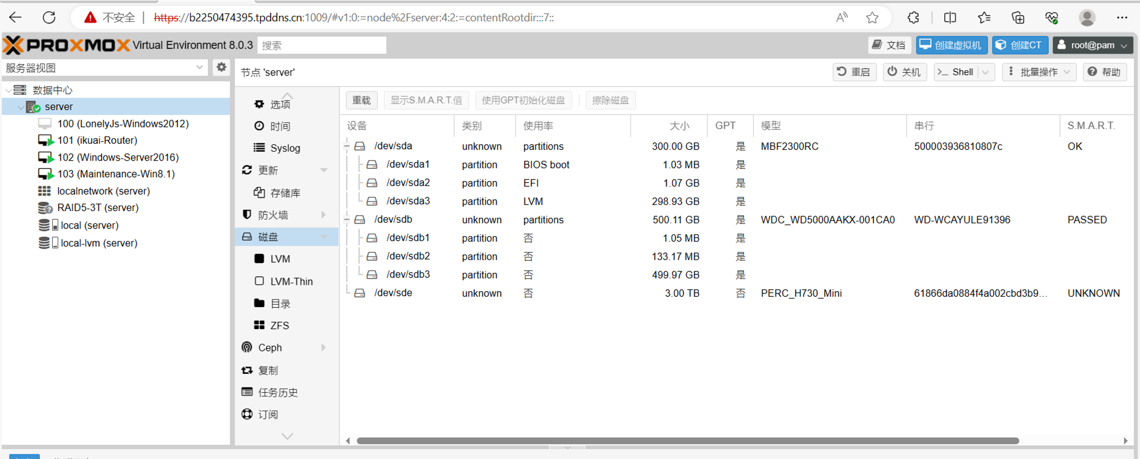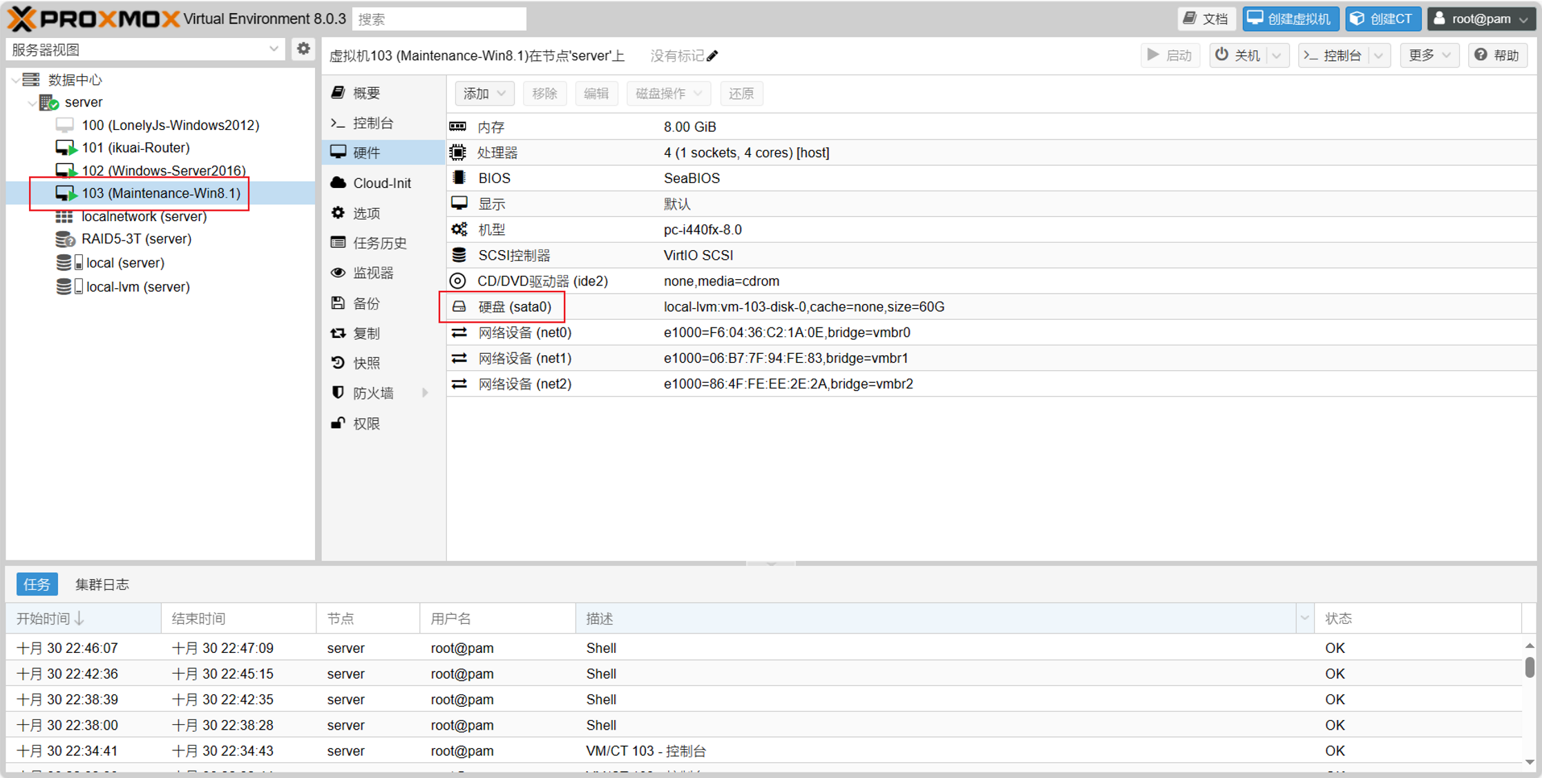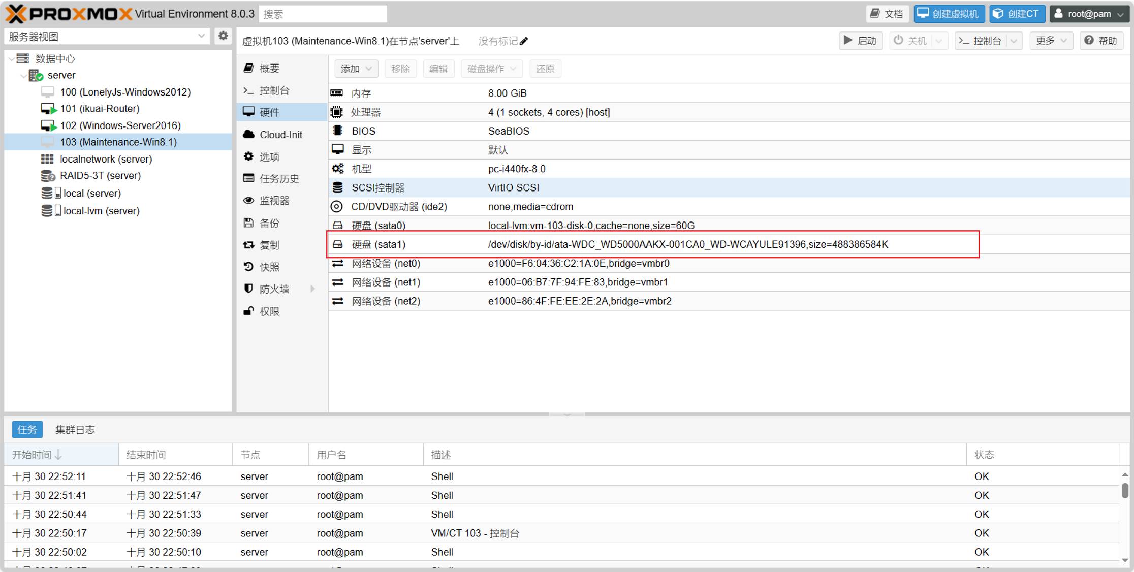 到103虚拟机查看,发现多了一个硬盘,并且直通