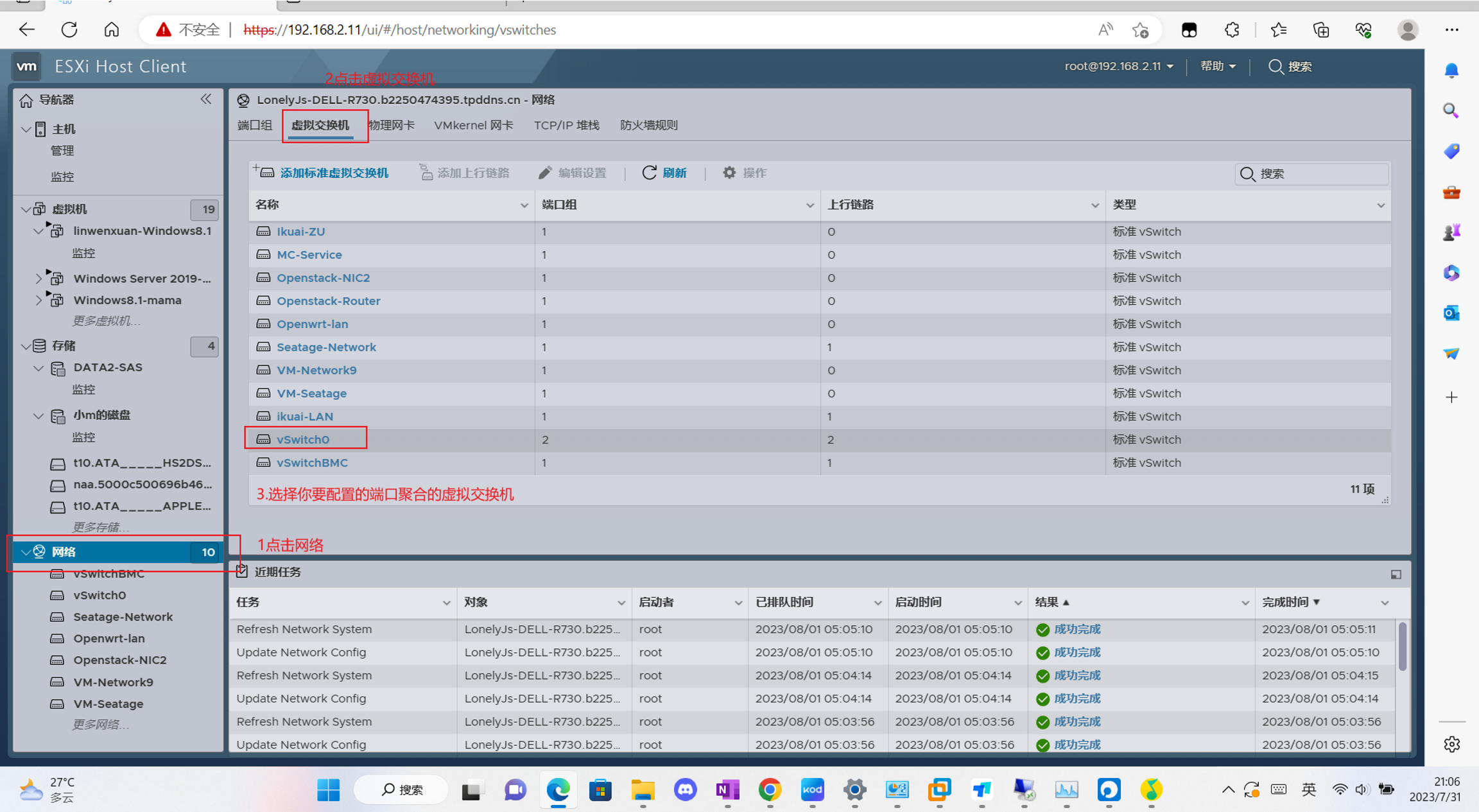 1、进入esxi的web管理界面,然后点击网络-虚拟交换机,点击你需要配置端口聚合的虚拟交换机