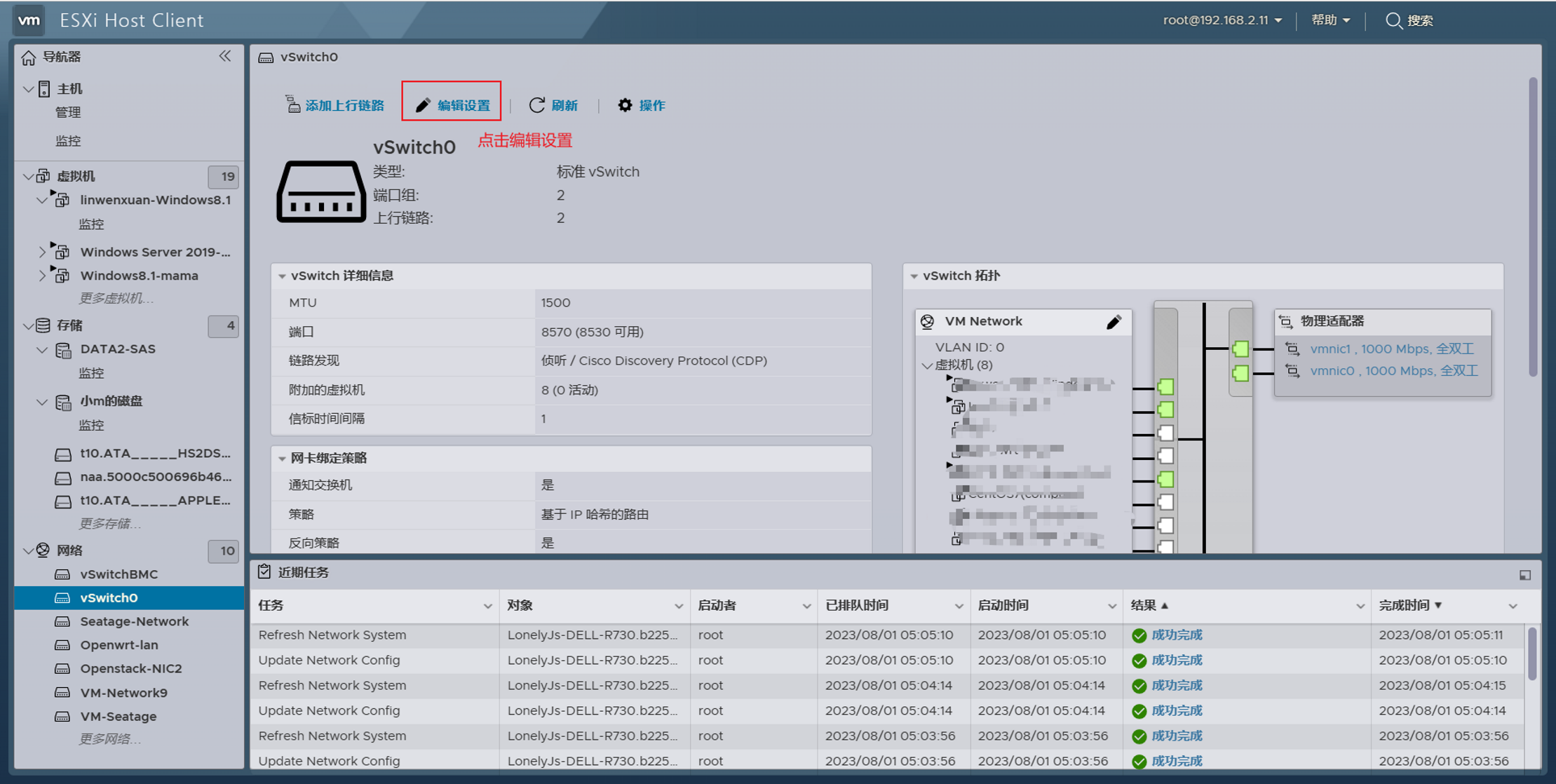 2、我这里以vSwitch0为例,所以点击了vSwitch0